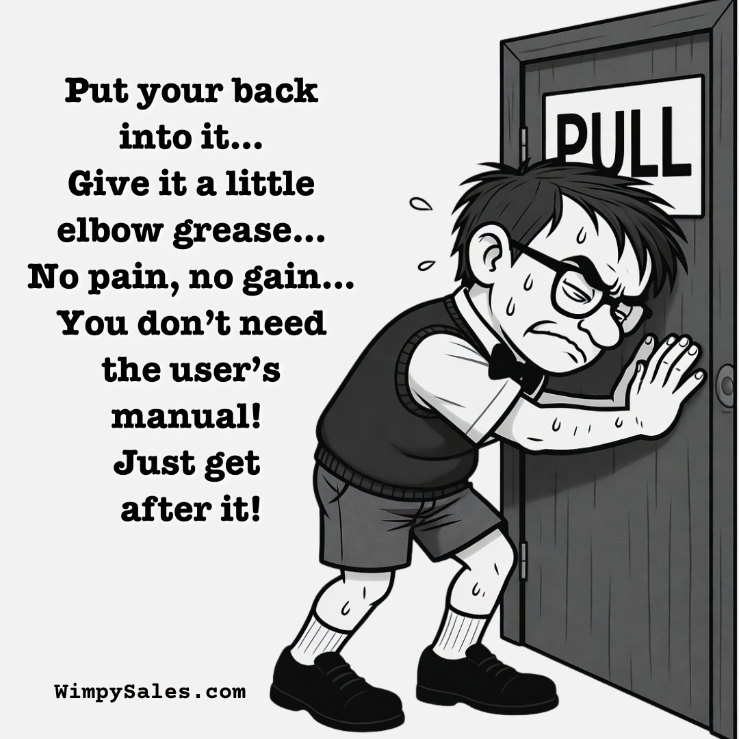 90 to 180 degrees out from what you’ve been doing, i.e., ya gotta push if you wanna get a good pull.
